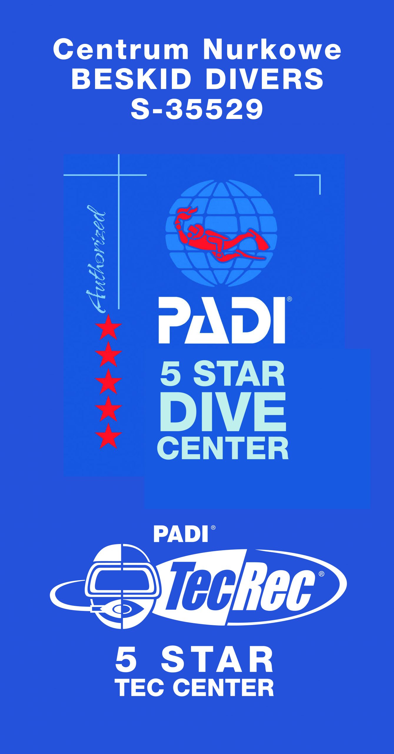 Beskid Divers to jedyne w Bielsku Białej  , autoryzowane 5-cio gwiazdkowe centrum PADI oraz PADI TecRec, biznes partner DAN, Emergency First Response Center.